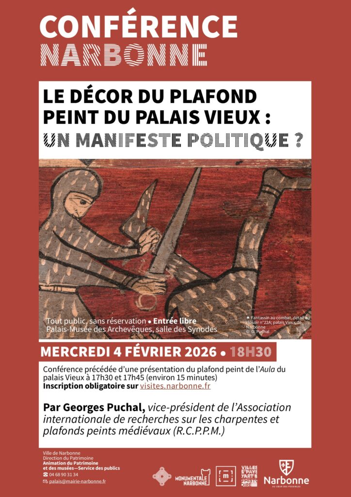 La RCPPM est heureuse d’annoncer la conférence que donnera Georges Puchal au Palais-Musée des archevêques de Narbonne, intitulée Le décor du plafond peint du Palais vieux de Narbonne : un manifeste politique ?, mercredi 4 février 2026 à 18h.