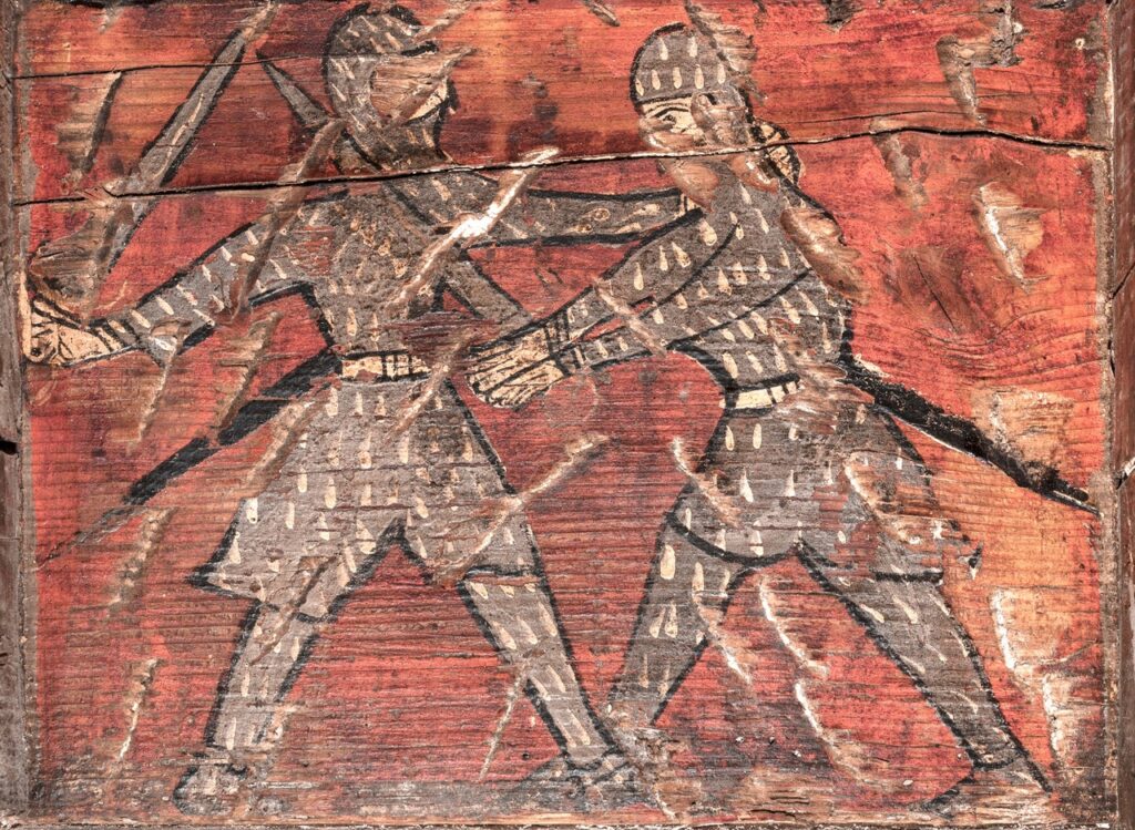 Grâce aux analyses dendrochronologiques et stylistiques, on sait désormais que ce plafond a été construit et peint autour des années 1220. C’est un des plus vieux plafonds peints d’Europe.